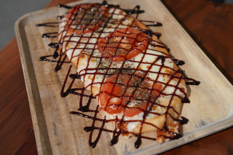 feta cheese, drizzled with balsamic glaze and housemade